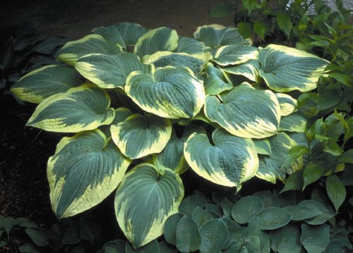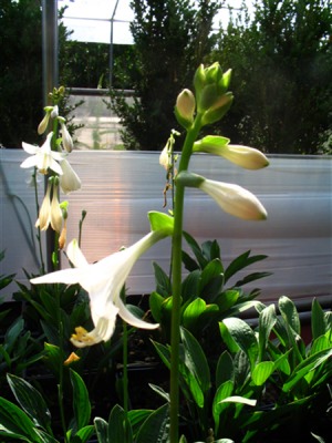 La piantumazione può essere effettuata sia in Primavera che in Autunno, anche se la prima è sicuramente sempre da preferire. Per quanto riguarda l'esposizione bisogna tenere presente due cose: nel caso venga tenuta maggiormente in considerazione la bellezza delle foglie, è meglio piantare le nostre Hosta in piena ombra; se invece si vuole puntare su una bella e abbondante fioritura, è meglio che abbiano due o tre ore di sole al giorno (ovviamente non quello di mezzogiorno). Si può comunque sciegliere una via di mezzo, e quindi piantarle alla mezz'ombra. Sia le varietà a foglia glauca che quelle a foglia variegata se esposte a troppe ore di sole avranno dei problemi: le prime perderanno la loro lucentezza, mentre le seconde vedranno essicarsi le parti chiare della lamina. In questi ultimi anni sono comunque state selezionate delle cultivar che tollerano bene il sole anche per metà giornata, ovviamente parlando di piante che hanno godutodi una buona pratica colturale (concimazione, irrigazione, umidità...). L'irrigazione deve essere tenuta in considerazione soprattutto nei mesi estivi, cioé durante il periodo di fioritura, facendo attenzione però ai ristagni d'acqua che potrebbero far marcire le nostre piante (soprattutto le varietà piccole), ma anche a non lasciarle seccare. La concimazione (che, come abbiamo già detto, è una pratica necessaria per avere delle belle piante) dovrebbe essere effettuata due volte nell'arco dell'anno: una in primavera per rendere consistente e forte il fogliame, e l'altra in Agosto/Settembre per agevolare lo sviluppo dei rizomi (e quindi aiutare la pianta ad avere sostanze di riserva che le serviranno per superare meglio l'inverno). Il maggiore nemico delle Hosta sono sicuramente le lumache e le chiocciole che mangiano le foglie. sieboldiana Elegans grandi foglie cuoriformi grigio-scuro bluastro con venature segnate, fiori lilla pallido, varietà molto grande (h. 1 m.), distanza di piantumazione 1, 5 m. fortunei Sharmon foglie verdi con al centro del giallo e venature segnate, fiori lavanda, varietà grande. Wolverine foglie a forma lanceolata blu-verdi con bordo giallo crema, fiori lavanda, varietà media a crescita eretta. Vulcan foglie bianco crema quasi giallo con ampio bordo verde scuro, fiori lavanda pallido, varietà molto grande (h.100/120 cm.). Showboat foglia , leggermente lucida, color verde scuro con ampio margine bianco crema, fiori lavanda pallido, varietà media. Sagae foglie grigio-verdi con margine giallo, alti fiori lavanda pallido, forma slanciata, varietà grande. Popcorn foglie grandi, arrotondate e a coppa con centro bianco crema e ampi bordi verde-bluastri, fiori lavanda, varietà media. Red Host Flash grandi foglie bianco crema con margine verde, fiore lavanda pallido, varietà molto grande (h.100/120 cm.) Photo Finish foglie crema con ampio bordo verde che cambiano durante l'estate fino a diventare blu in autunno, fiori bianchi con una leggera sfumatura lavanda, varietà media. Paul's Glory foglie grinzose gialle con ampio bordo verde-blu, fiori lavanda, varietà grande e vigorosa, pu÷ essere piantata in ombra parziale. Mardi Gras grandi foglie verdi con bordo bianco crema, fiore lavanda pallido, varietà molto grande (h. 100/120 cm.) Krossa Regal grandi foglie grigio-blu sorrette da lunghi piccioli, fiori lilla pallido, varietà grande. Lakeside April Snow foglie cuoriformi verdi con bordo bianco crema, spesse, striate di bianco nel centro, fiori lavanda, varietà grande. Golden Tiara foglie tondeggianti verdi chiaro e variegatura giallo-verde sui bordi, fiori color lavanda scuro, varietà grande. fortunei Albopicta foglie con bordo verde e centro giallo crema in primavera per poi diventare, successivamente, quasi tutta verde, fiori lavanda, varietà grande. Fragrant Dream foglie verde scuro con bordo giallo, fiori bianchi profumati, varietà grande e vigorosa. Gold Standar foglie ovali giallo pallido con bordo verde scuro, fiori bianco-lavanda chiaro, varietà grande, distanza di piantumazione m.1, 2, richiede pieno sole. Emily Dickinson foglie lucide verdi con un bordo bianco, fiori lavanda profumati, forma slanciata, varietà grande Dance With Me foglie cuoriformi gialle con ampio margine irregolare verde scuro, fiori lavanda, varietà grande e vigorosa. Fire Island foglie ondulate che variano dal giallo al giallo verdastro, con picciolo rosso, fiori lavanda, varietà media. Bressingham Blu foglie cuoriformi verdi-blu, fiori bianchi, varietà grande, distanza di piantumazione 60 cm. |