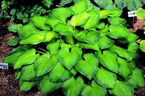 La piantumazione può essere effettuata sia in Primavera che in Autunno, anche se la prima è sicuramente sempre da preferire. Per quanto riguarda l'esposizione bisogna tenere presente due cose: nel caso venga tenuta maggiormente in considerazione la bellezza delle foglie, è meglio piantare le nostre Hosta in piena ombra; se invece si vuole puntare su una bella e abbondante fioritura, è meglio che abbiano due o tre ore di sole al giorno (ovviamente non quello di mezzogiorno). Si può comunque sciegliere una via di mezzo, e quindi piantarle alla mezz'ombra. Sia le varietà a foglia glauca che quelle a foglia variegata se esposte a troppe ore di sole avranno dei problemi: le prime perderanno la loro lucentezza, mentre le seconde vedranno essicarsi le parti chiare della lamina. In questi ultimi anni sono comunque state selezionate delle cultivar che tollerano bene il sole anche per metà giornata, ovviamente parlando di piante che hanno godutodi una buona pratica colturale (concimazione, irrigazione, umidità...). L'irrigazione deve essere tenuta in considerazione soprattutto nei mesi estivi, cioé durante il periodo di fioritura, facendo attenzione però ai ristagni d'acqua che potrebbero far marcire le nostre piante (soprattutto le varietà piccole), ma anche a non lasciarle seccare. La concimazione (che, come abbiamo già detto, è una pratica necessaria per avere delle belle piante) dovrebbe essere effettuata due volte nell'arco dell'anno: una in primavera per rendere consistente e forte il fogliame, e l'altra in Agosto/Settembre per agevolare lo sviluppo dei rizomi (e quindi aiutare la pianta ad avere sostanze di riserva che le serviranno per superare meglio l'inverno). Il maggiore nemico delle Hosta sono sicuramente le lumache e le chiocciole che mangiano le foglie. sieboldiana Elegans grandi foglie cuoriformi grigio-scuro bluastro con venature segnate, fiori lilla pallido, varietà molto grande (h. 1 m.), distanza di piantumazione 1, 5 m. fortunei Sharmon foglie verdi con al centro del giallo e venature segnate, fiori lavanda, varietà grande. Wolverine foglie a forma lanceolata blu-verdi con bordo giallo crema, fiori lavanda, varietà media a crescita eretta. Vulcan foglie bianco crema quasi giallo con ampio bordo verde scuro, fiori lavanda pallido, varietà molto grande (h.100/120 cm.). Showboat foglia , leggermente lucida, color verde scuro con ampio margine bianco crema, fiori lavanda pallido, varietà media. Sagae foglie grigio-verdi con margine giallo, alti fiori lavanda pallido, forma slanciata, varietà grande. Popcorn foglie grandi, arrotondate e a coppa con centro bianco crema e ampi bordi verde-bluastri, fiori lavanda, varietà media. Red Host Flash grandi foglie bianco crema con margine verde, fiore lavanda pallido, varietà molto grande (h.100/120 cm.) Photo Finish foglie crema con ampio bordo verde che cambiano durante l'estate fino a diventare blu in autunno, fiori bianchi con una leggera sfumatura lavanda, varietà media. Paul's Glory foglie grinzose gialle con ampio bordo verde-blu, fiori lavanda, varietà grande e vigorosa, pu÷ essere piantata in ombra parziale. Mardi Gras grandi foglie verdi con bordo bianco crema, fiore lavanda pallido, varietà molto grande (h. 100/120 cm.) Krossa Regal grandi foglie grigio-blu sorrette da lunghi piccioli, fiori lilla pallido, varietà grande. Lakeside April Snow foglie cuoriformi verdi con bordo bianco crema, spesse, striate di bianco nel centro, fiori lavanda, varietà grande. Golden Tiara foglie tondeggianti verdi chiaro e variegatura giallo-verde sui bordi, fiori color lavanda scuro, varietà grande. fortunei Albopicta foglie con bordo verde e centro giallo crema in primavera per poi diventare, successivamente, quasi tutta verde, fiori lavanda, varietà grande. Fragrant Dream foglie verde scuro con bordo giallo, fiori bianchi profumati, varietà grande e vigorosa. Gold Standar foglie ovali giallo pallido con bordo verde scuro, fiori bianco-lavanda chiaro, varietà grande, distanza di piantumazione m.1, 2, richiede pieno sole. Emily Dickinson foglie lucide verdi con un bordo bianco, fiori lavanda profumati, forma slanciata, varietà grande Dance With Me foglie cuoriformi gialle con ampio margine irregolare verde scuro, fiori lavanda, varietà grande e vigorosa. Fire Island foglie ondulate che variano dal giallo al giallo verdastro, con picciolo rosso, fiori lavanda, varietà media. Bressingham Blu foglie cuoriformi verdi-blu, fiori bianchi, varietà grande, distanza di piantumazione 60 cm. |